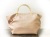 【超軽量チェーンバッグ】 軽く、雨に強く、シワになりにくい がコンセプトの超軽量チェーンバッグです。 素材はハイブリッド合皮と呼ばれるしっとりとしたペタペタしない冬場に堅くなったりしない見た目はまるで革のようなしなやかさを持った新しい合皮です。色は桜ピンク色。ほんのり淡い上品なピンク色です。内側には携帯用と、パスケース用のパッチポケット付。裏地は暗いところでも見やすいように明るい色を付けています。口にはマグネット付で裾のマチを深めにとっていますのでお弁当箱を横にせずに収まります。サイドにはゴムシャーリングが入っていてちょっといい雰囲気です。手元のチェーンはキラキラ動きますので上品に光ります。日本の職人がミシンを踏んで縫っている当社の定番中の定番です。お手入れはお台所用の中性洗剤を薄めて汚れを叩くようにして下さい。 口幅 25センチ、底幅 17センチ、奥行 13センチ、高さ 17.5センチ、持ち手の高さ 6.5センチ、重さ 150グラム、 日本製
