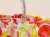 オレンジ色からピンク、イエロー色までのグラデーションは華やかでコーディネイトしやすい色柄です。