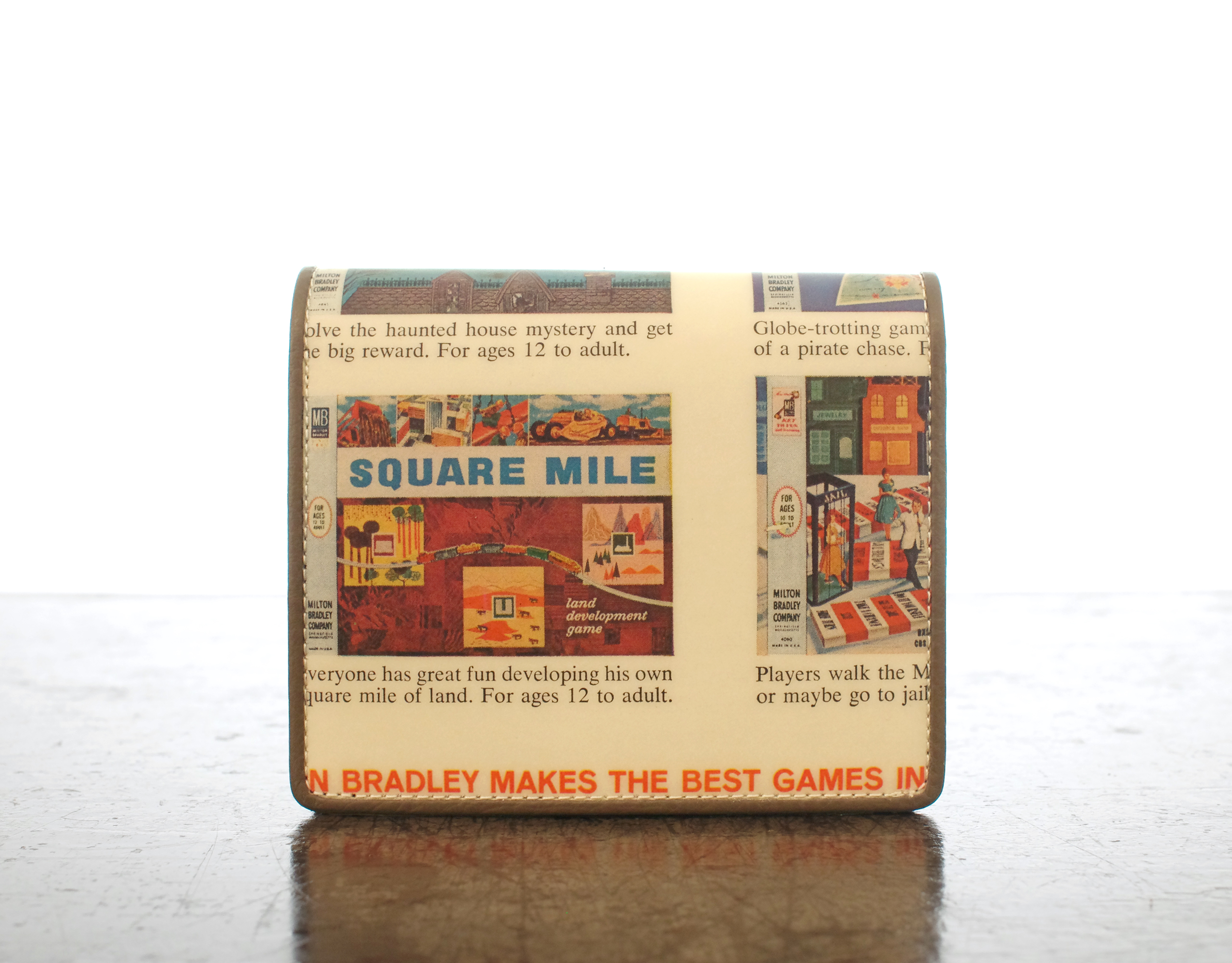 【131-975-S67 】 『 今も昔も みんな大好き ボードゲーム 広告 』柄 BOX3折財布