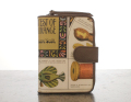 【世界に1つだけのお財布】 外側は特別なプラスティックコーティングを施した雑誌広告です. 本物の雑誌を使用しているので同じ柄は二つとありません. 内側はココアブラウン色の牛革でシボを型押ししています 内側はシボを押したブラウン色の牛革で カードの仕切りで8枚. その他合わせてカードは15~16枚くらいは入ります . その他にレシート用の仕切りと小銭入れです. 出来るだけ小さく、かつ使いやすく とのお客様からのリクエストで生まれた商品です. プラスティックコーティングは革のように使えば使うほどいい感じに色が馴染んできます . 日本の職人が丁寧に縫い上げています. 表生地:ヴィンテージペーパー×プラスティックコーティング 裏生地:牛革 レーヨン 日本製