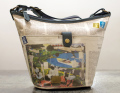 【世界に1つだけのショルダーバッグ】 フランスの新聞やドイツの新聞などを特別なプラスティックコーティングを施した小ぶりなショルダーバッグです 本物の新聞を使用しているので同じ柄は二つとありません プラスティックコーティングは雨にも強く また革のように使えば使うほど色が馴染みより雰囲気が増してきます 底が楕円のバケツ型なのでコロンとしてコンパクトでかわいらしいサイズです パーツには牛革を ストラップや底面には合皮を使用し軽くしています 内側には大事なもの用のファスナー付ポケットとパスケースなどに使いやすいファスナーなしのポケットがついています 素材 : リサイクルペーパー ・ 綿 ・牛革 ・その他 幅280mm ・ 奥行130mm ・ 高さ220mm ・ 重さ 370g 日本製