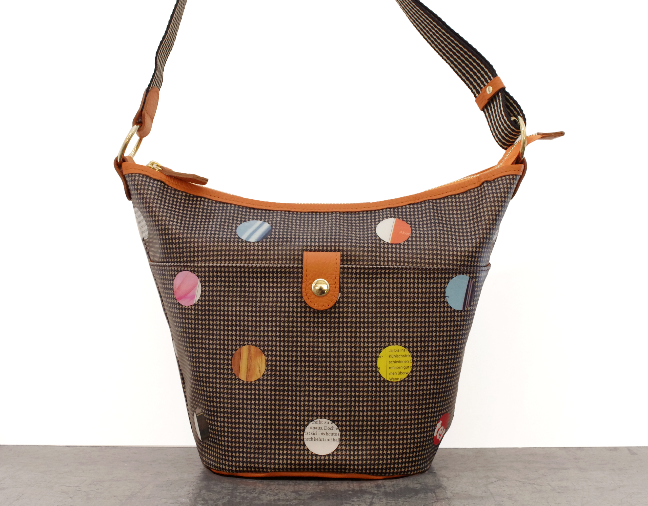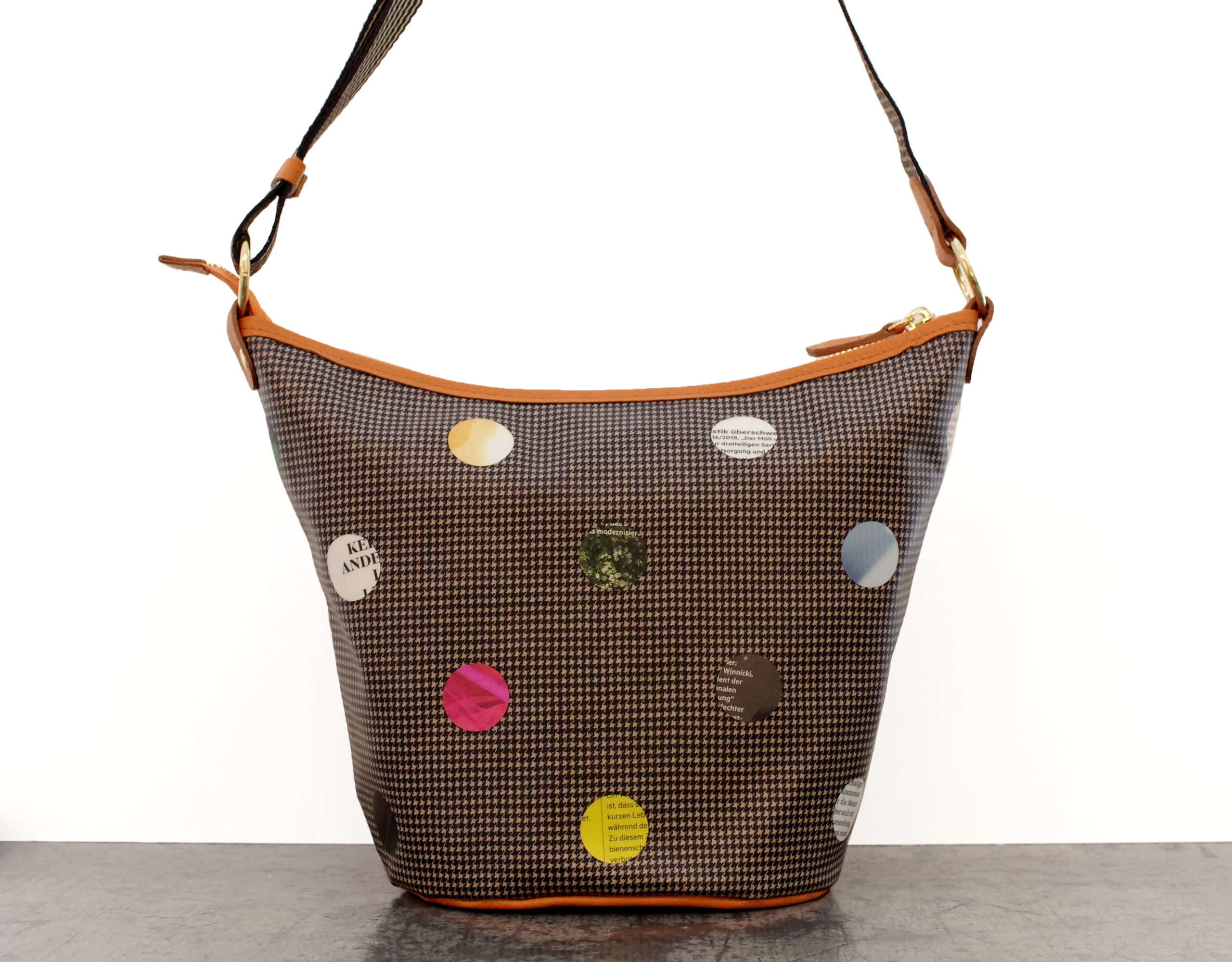 バケツ型 ポシェット ハウンドトゥース × ペーパードット 柄 です