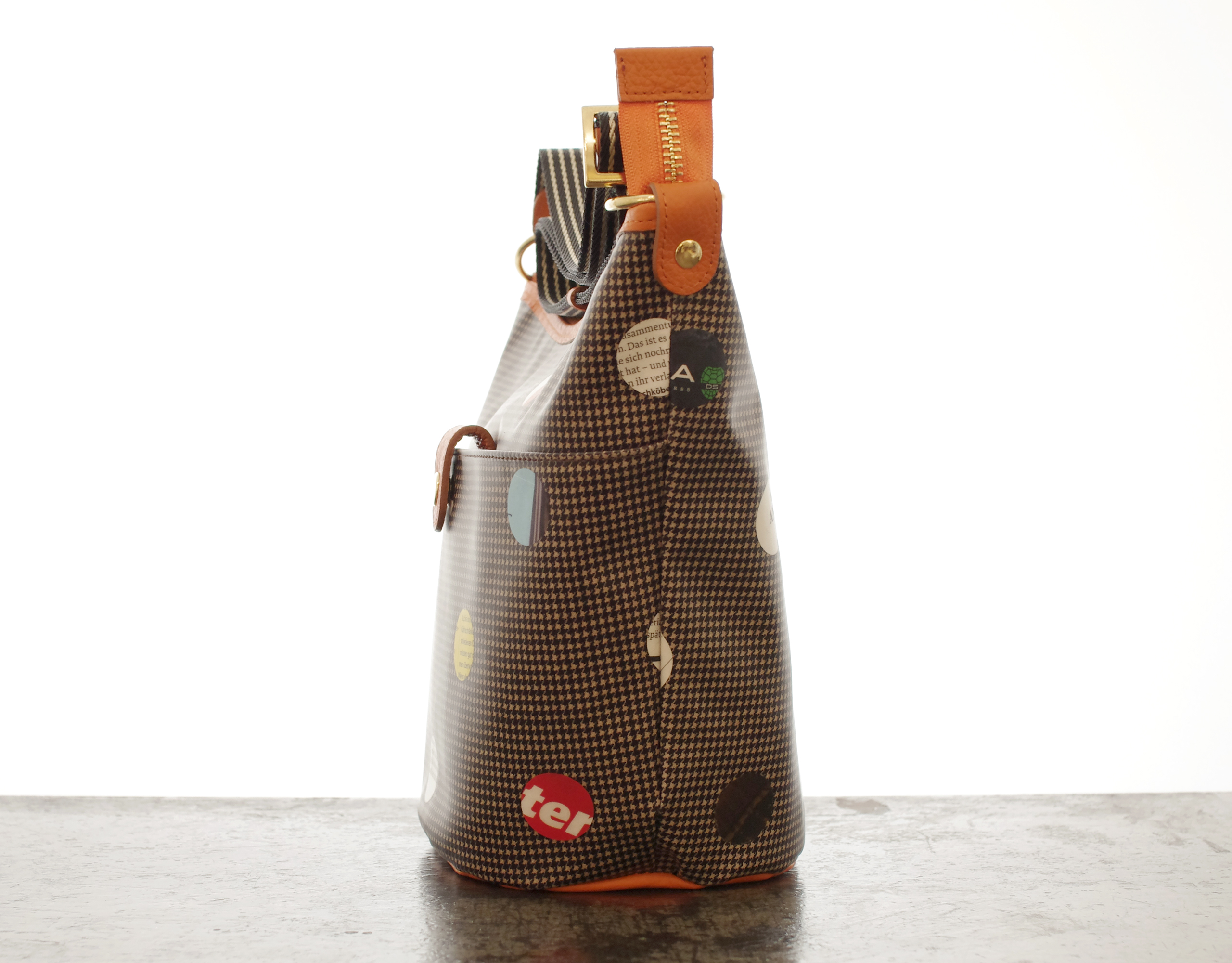 【151-816 】 リサイクルペーパー × ハウンドトゥース バケツ型 ポシェット 01