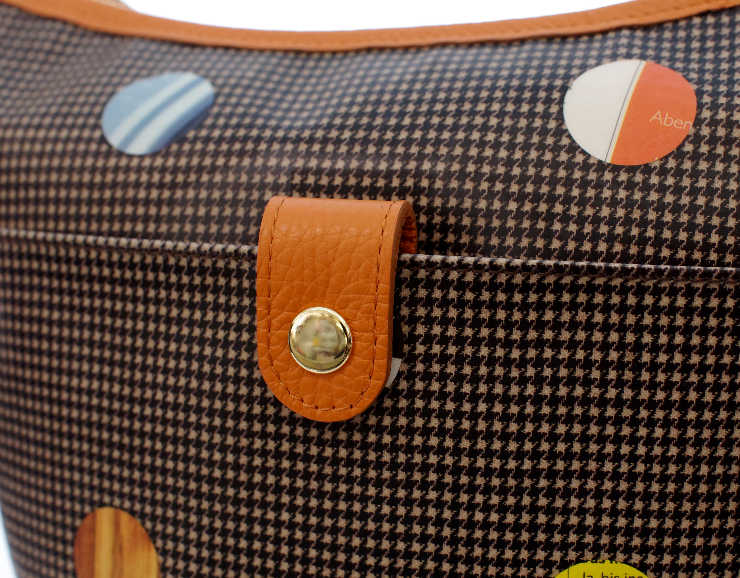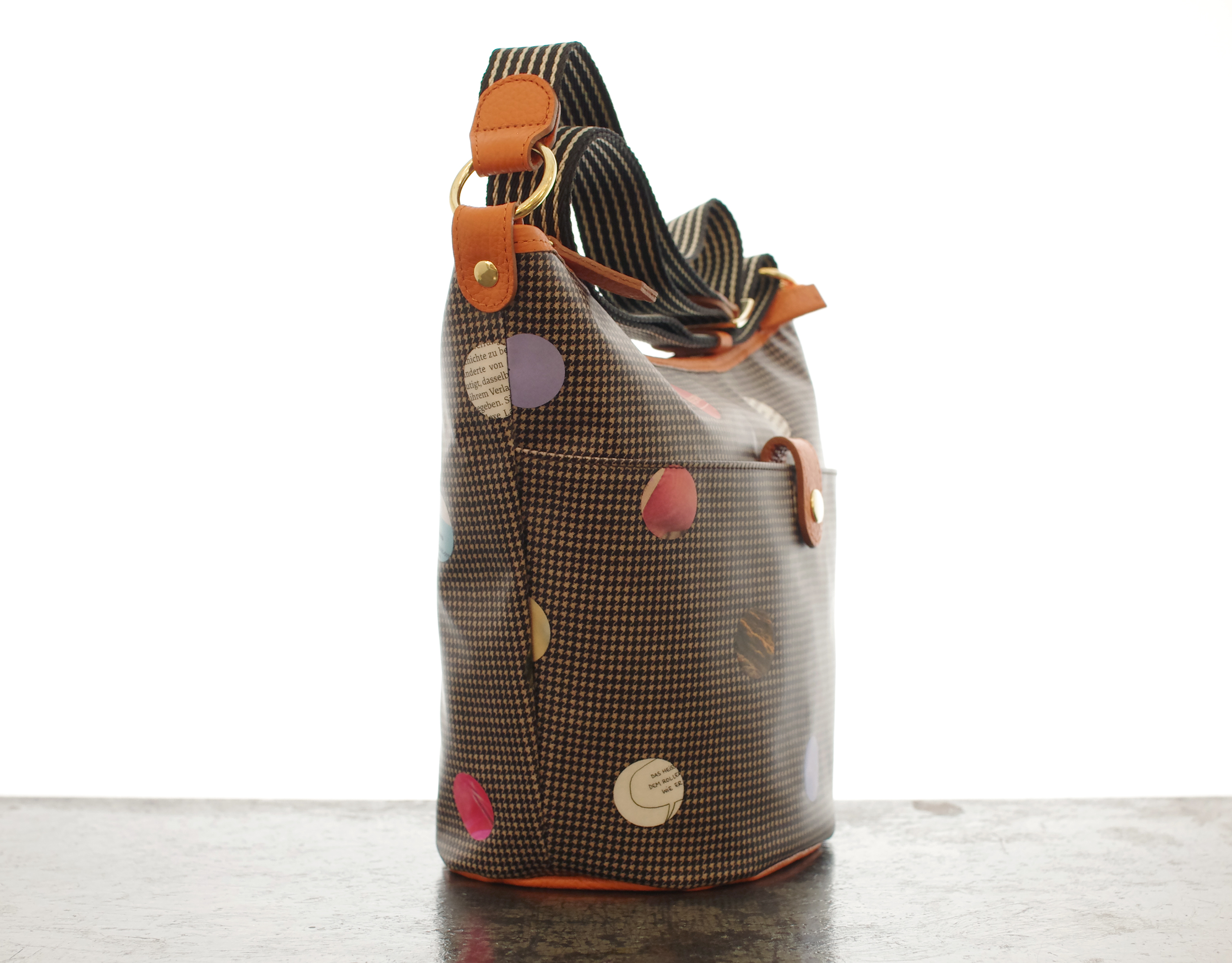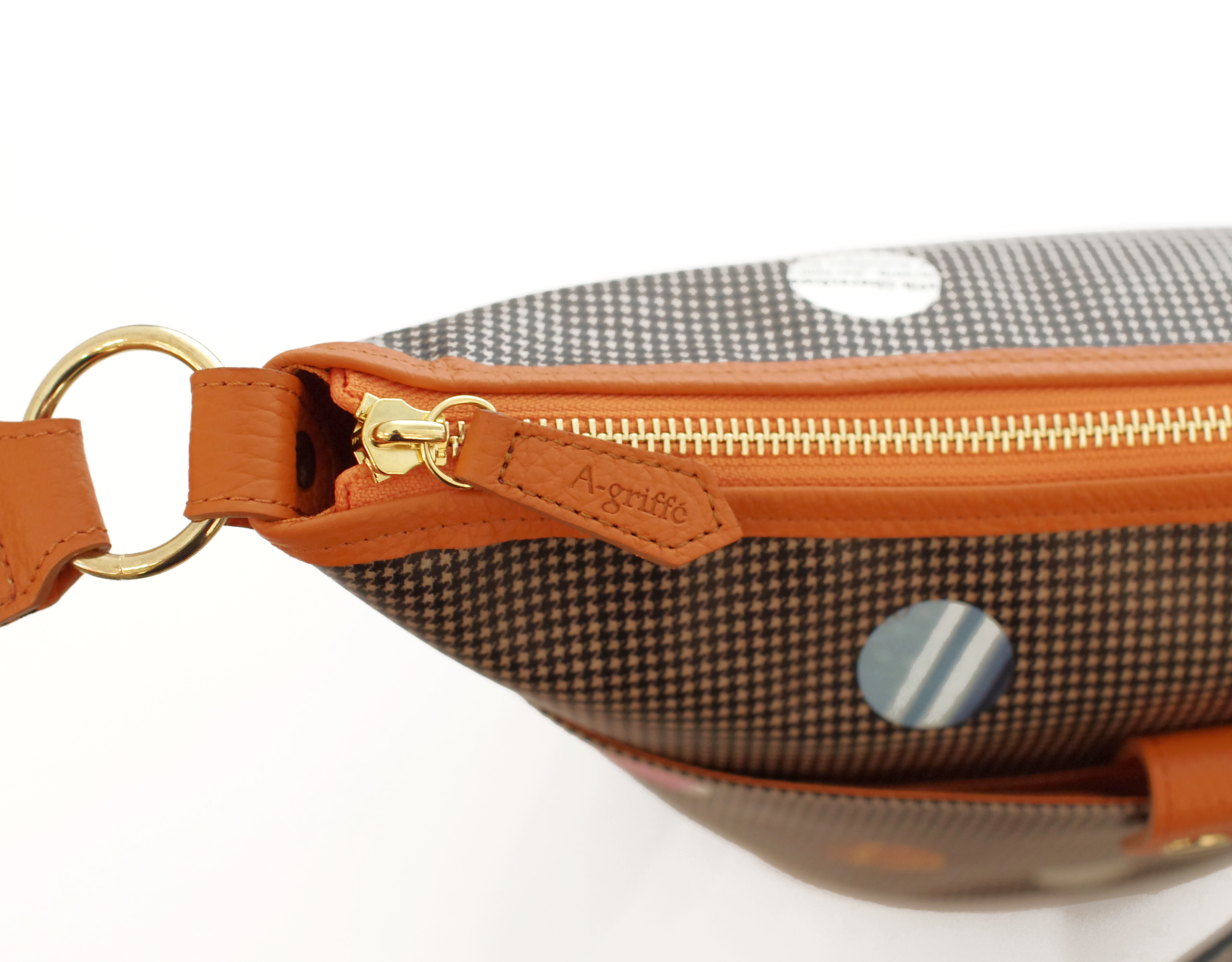 バケツ型 ポシェット ハウンドトゥース × ペーパードット 柄 です