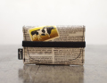 【ペーパー スモールウォレットシリーズ】 辞書 × 切手 柄 カードケース ゴムベルトでフラップを開けしめするタイプのカードケース です. うしろ面にもカードが入れられます . 厚みにもよりますが 名刺なら20枚は入ります. 日本の職人が丁寧に縫い上げています. ※ 切手の柄が1つずつ異なる1点ものです サイズ:幅 113mm、奥行 10mm、高さ 73mm、重さ 33g . 表生地:リサイクルペーパー × プラスティックコーティング 裏生地:ビニール 日本製