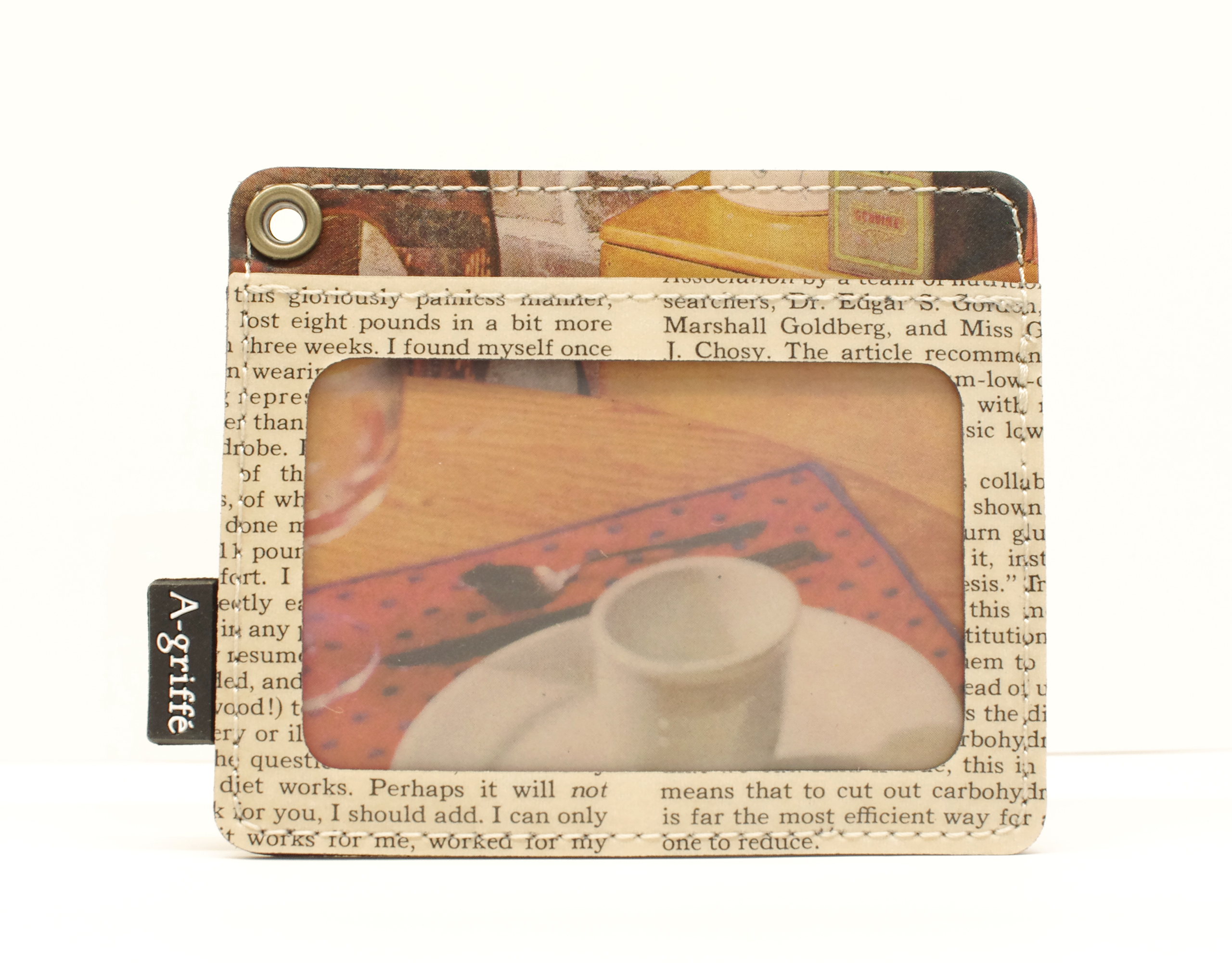 【世界に一つだけのパスケース】 ヴィンテージペーパー セル窓付パスケース 1950年代~70年代初期の雑誌を特別なプラスティックコーティングを施した素材です. 表面は透明のセル窓なので ID 入れても良いですね. 角のハトメ穴にストラップをつければ バッグにつけたり 首から下げたりもできます. うしろ面にもカードが入れられます . プラスティックコーティングは革のように使えば使うほど色が馴染み味わいが増してきます. 日本の職人が丁寧に縫い上げています. サイズ:幅 100mm、奥行 4mm、高さ 85mm、重さ 23.5g . 表生地:ヴィンテージペーパー × プラスティックコーティング 裏生地:ナイロン、ビニール 日本製z