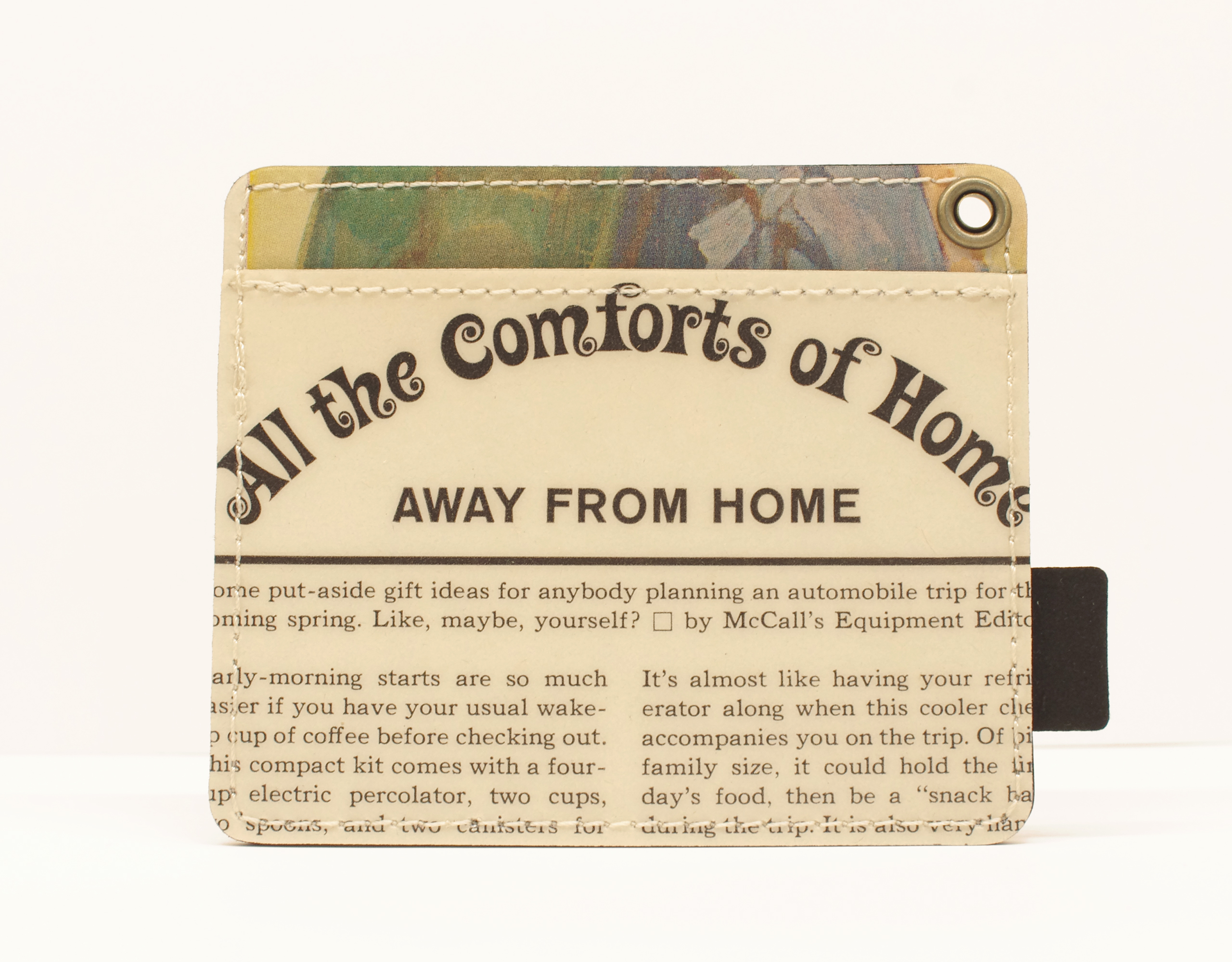 【世界に一つだけのパスケース】 ヴィンテージペーパー セル窓付パスケース 1950年代~70年代初期の雑誌を特別なプラスティックコーティングを施した素材です. 表面は透明のセル窓なので ID 入れても良いですね. 角のハトメ穴にストラップをつければ バッグにつけたり 首から下げたりもできます. うしろ面にもカードが入れられます . プラスティックコーティングは革のように使えば使うほど色が馴染み味わいが増してきます. 日本の職人が丁寧に縫い上げています. サイズ:幅 100mm、奥行 4mm、高さ 85mm、重さ 23.5g . 表生地:ヴィンテージペーパー × プラスティックコーティング 裏生地:ナイロン、ビニール 日本製z