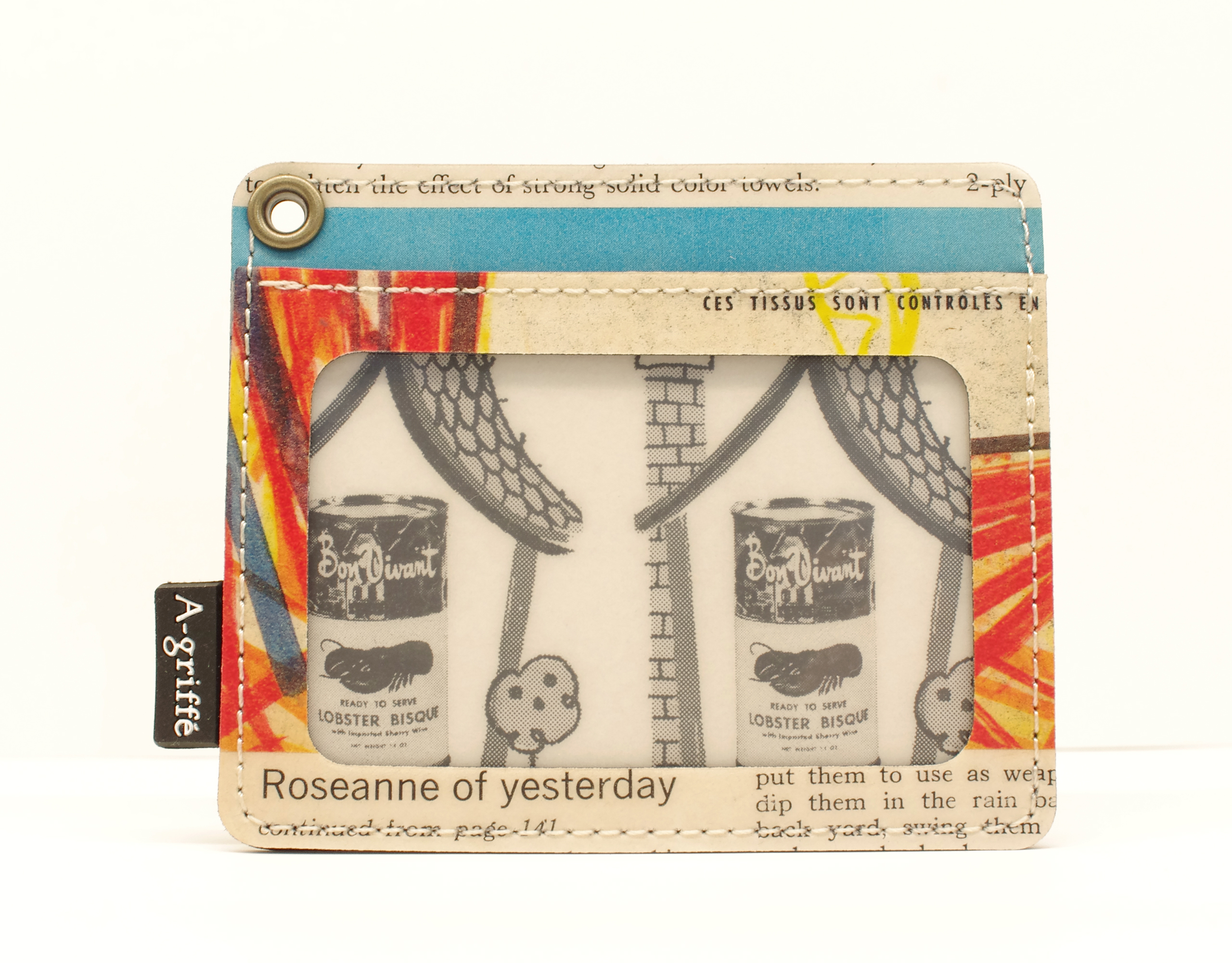 【世界に一つだけのパスケース】 ヴィンテージペーパー セル窓付パスケース 1950年代~70年代初期の雑誌を特別なプラスティックコーティングを施した素材です. 表面は透明のセル窓なので ID 入れても良いですね. 角のハトメ穴にストラップをつければ バッグにつけたり 首から下げたりもできます. うしろ面にもカードが入れられます . プラスティックコーティングは革のように使えば使うほど色が馴染み味わいが増してきます. 日本の職人が丁寧に縫い上げています. サイズ:幅 100mm、奥行 4mm、高さ 85mm、重さ 23.5g . 表生地:ヴィンテージペーパー × プラスティックコーティング 裏生地:ナイロン、ビニール 日本製z