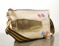 【世界に一つだけのショルダーバッグ】 フランスの新聞やドイツの新聞などを特別なプラスティックコーティングを施したストラップ付き ポーチです 本物の新聞を使用しているので同じ柄は二つとありません プラスティックコーティングは雨にも強く また革のように使えば使うほど色が馴染みより雰囲気が増してきます 長財布の入るサイズなのでストラップをつければ サコッシュ・ポシェットとして 外せばバッグインバッグとしてもお使いいただけます オリジナルのストラップは38mm幅なので コーディネートのアクセントにもなりますね 素材 : リサイクルペーパー ・ナイロン・ 綿 ・牛革 口幅 250mm ・底幅 195mm ・ 奥行 55mm ・ 高さ 155m ・ 重さ 本体 85g + ストラップ 90g 日本製