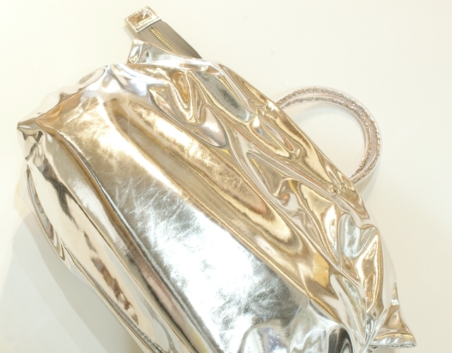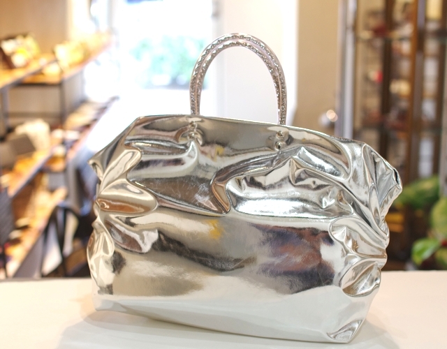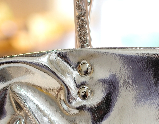【超軽量チェーンバッグ】 軽く、雨に強く、シワになりにくい がコンセプトの超軽量チェーンバッグです。 素材はしなやかでキラキラの合皮です。この日本製の合皮は従来の合皮と違い、冬場硬くなったり、ベタベタしたりしにくい加工になっています。またとっても軽いのも魅力の一つです。ターコイズブルー色の裏地との相性もばっちりです。 内側には携帯用と、パスケース用のパッチポケット付。 裏地は暗いところでも見やすいように明るい色を付けています。 口はファスナー付でファスナー脇の両サイドに少し隙間を持たせています。これはファスナーを開けずにペットボトルや折り傘などができるようにの配慮です。また裾のマチを深めにとっていますのでちょっと荷物が増えた時でも見た目以上に入ります。サイドにはゴムシャーリングが入っていてちょっといい雰囲気です。 手元のチェーンはキラキラ動きますので上品に光ります。 日本の職人がミシンを踏んで縫っている当社の定番中の定番です。お手入れはお台所用の中性洗剤を薄めて汚れを叩くようにして下さい。。 口幅 32センチ、底幅 27センチ、奥行 13センチ、高さ 25センチ、持ち手の高さ 8センチ、重さ 310グラム、 日本製>