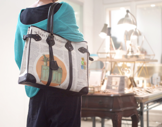 【世界に一つだけのトートバッグ】 ドイツ新聞柄 スクエアトート スカーレットレッド色 10