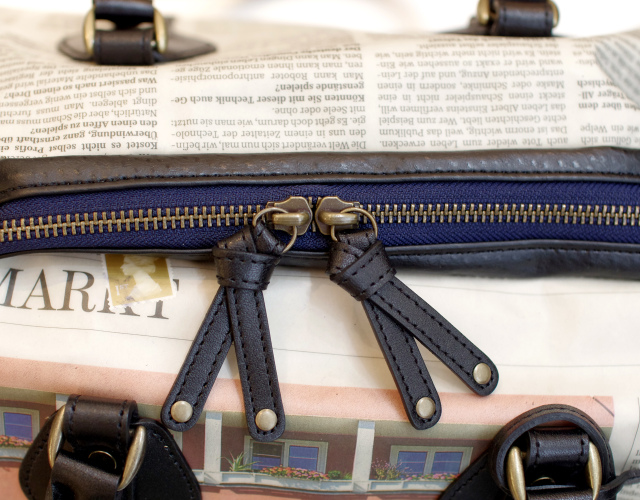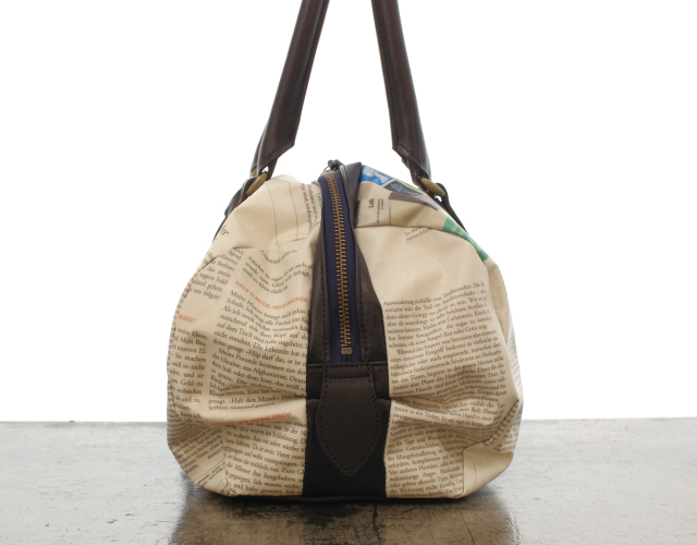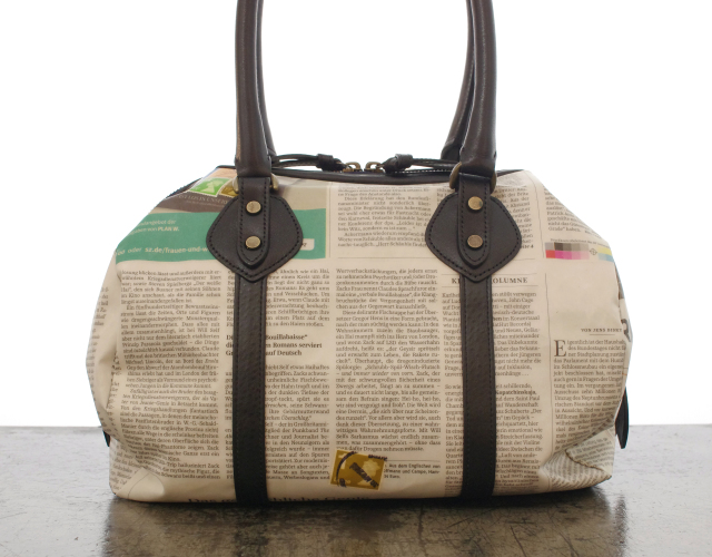 【世界に一つだけのボストンバッグ】 ドイツ新聞柄 ミディアムボストン ソリッドブラック色 04