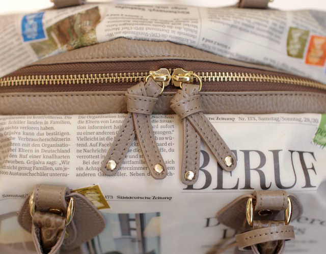 【世界に一つだけのボストンバッグ】 ドイツ新聞柄 ミディアムボストン グレージュ色 03