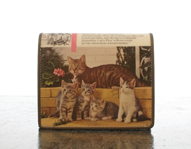 《猫三昧》 【 SNS掲載商品 】 ヴィンテージペーパー&牛革 BOX3折財布 S14