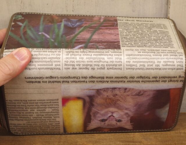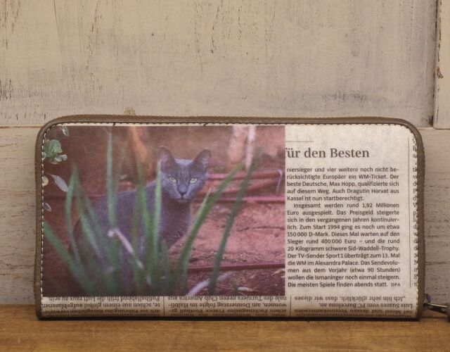 《猫三昧》【 SNS掲載商品 】 リサイクルペーパー&牛革 ラウンド長財布 S08