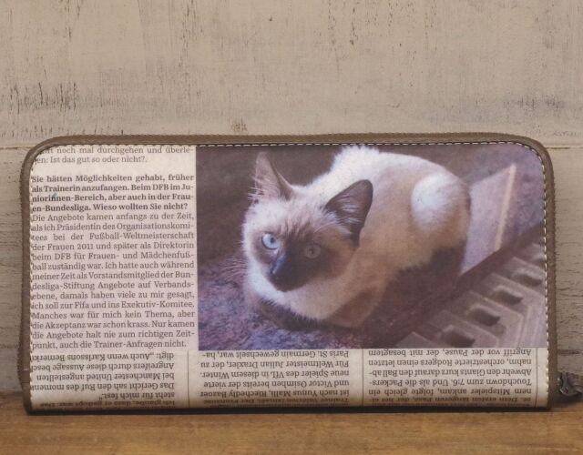 《猫三昧》【 SNS掲載商品 】 リサイクルペーパー&牛革 ラウンド長財布 S10