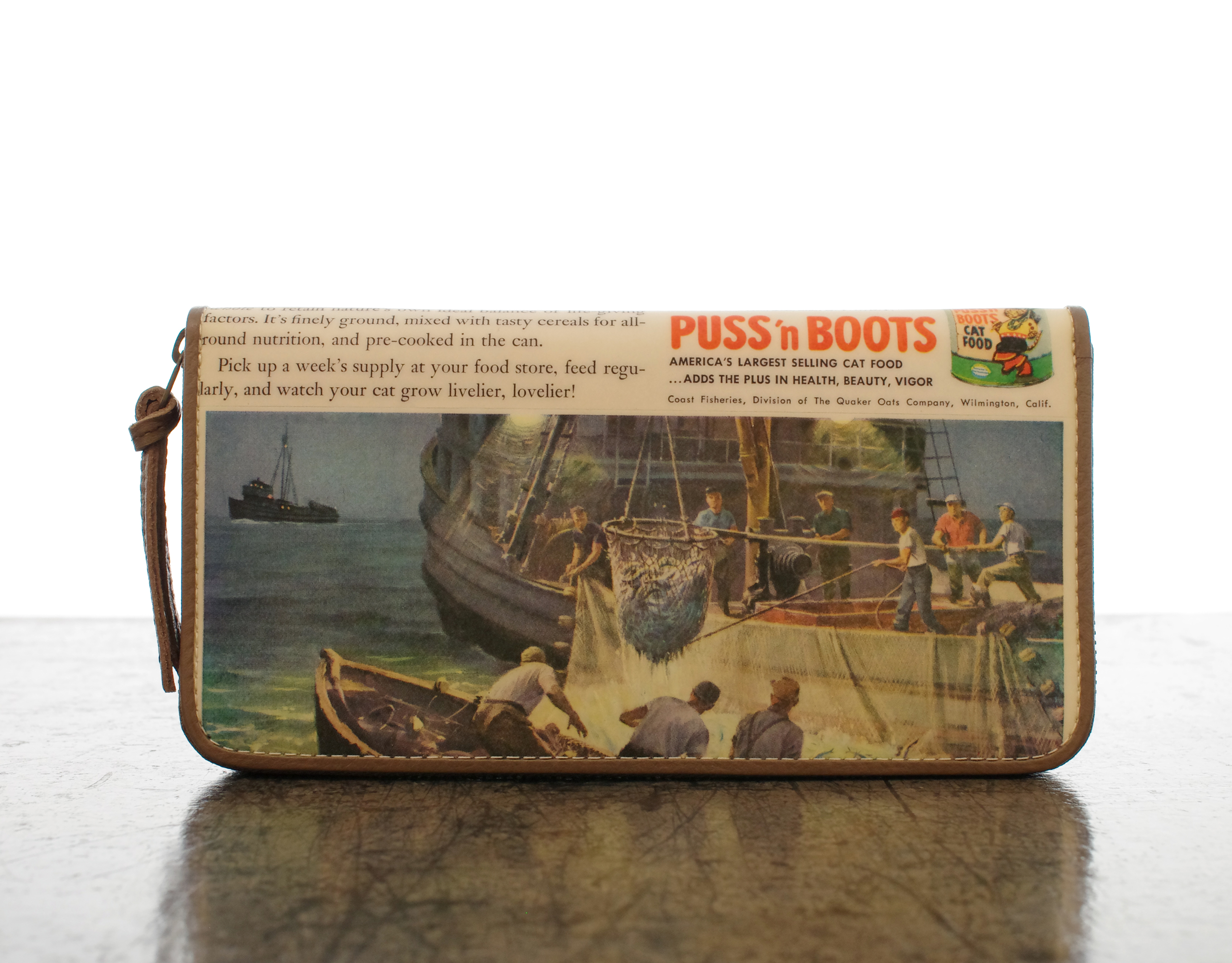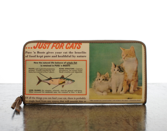《猫三昧》【 SNS掲載商品 】 ヴィンテージペーパー&牛革 ラウンド長財布 S16