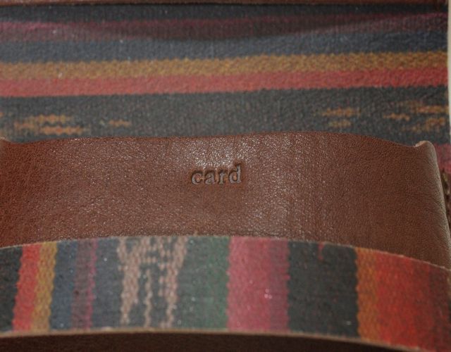 【軽量プリントレザー】 カードケース ブラウン色オルテガプリント柄 手作業で牛革の裏側にエスニック調のプリントを施したカードケースです。