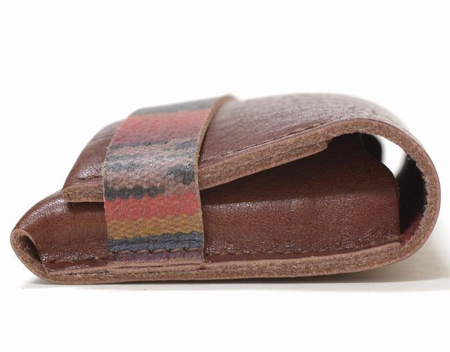 硬くならないように、重くならないように、柔らかくなめした革を出来るだけミシンを使わずにふんわり仕上げています。革の雰囲気を楽しんでいただきながらカジュアルに持ち歩いていただけます。このブラウン革×エスニック調オルテガプリントは使っていくうちに色合いが深まり風合いが増していきます。またプリントと革の色が馴染んでいてとても自然なデザインです。この商品は日本の職人がミシンを踏んで縫っている当社の定番です。