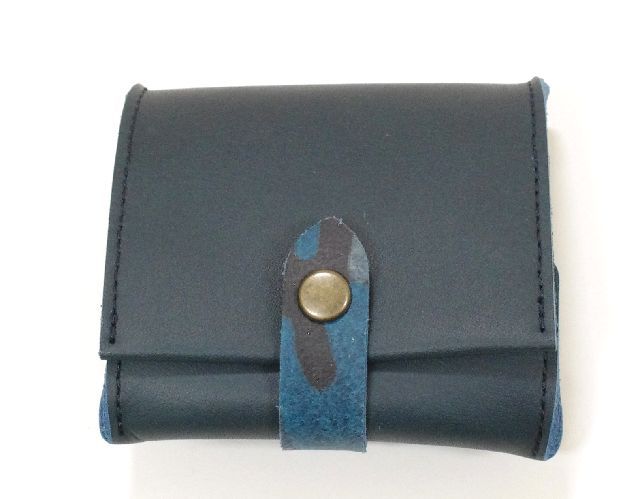 【軽量プリントレザー】 牛革コインケース ブルーグリーン色 カモフラージュプリント柄 手作業で牛革の裏側にカモフラージュ柄のプリントを施したコインケースです。