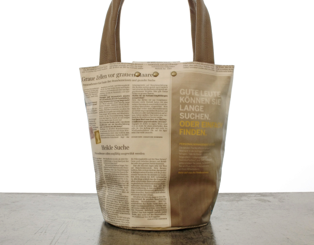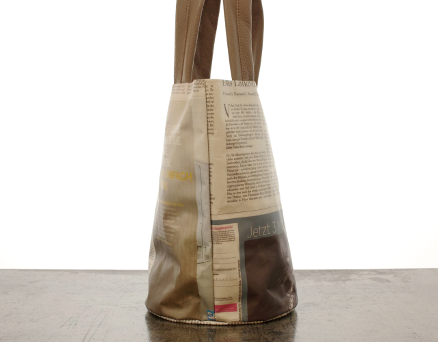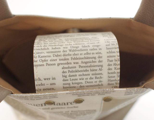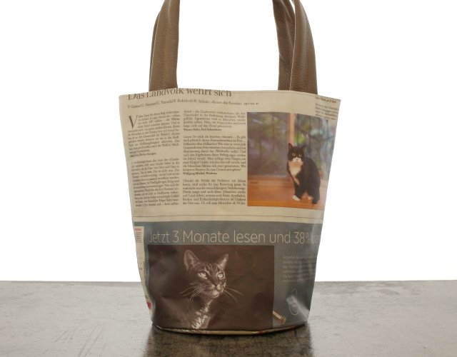 《猫三昧》【世界に一つだけのトートバッグ】ドイツ新聞紙 バケツ型トート 持ち手 牛革 グレージュ色 01
