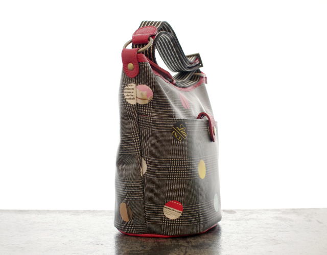 【世界に一つだけのポシェット】 リサイクルペーパー × グレンチェック バケツ型 ポシェット 02