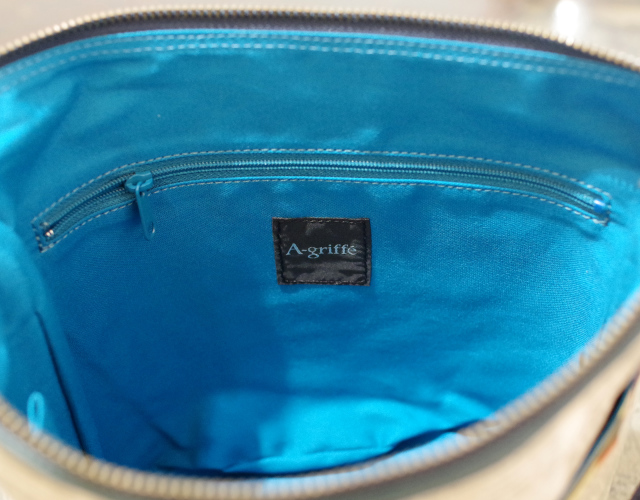 内側には大事なもの用のファスナー付ポケットとパスケースなどに使いやすいファスナーなしのポケットがついています