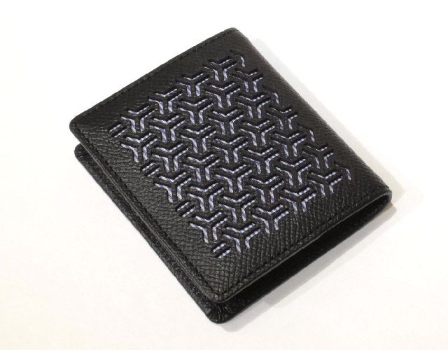 【牛革彫刻 小銭入れ】 特別になめし、シボの型押しをした牛革に彫刻を施しています。日本古来の吉祥文様の組亀甲柄。その下側に英国の伝統柄のロンドンストライプをあしらっています。手作業の工程をいくつも経て出来上がったその特別な深い彫刻は見る角度でその表情を変えます。日本の伝統柄と英国の伝統柄の出会いは、チョークストライプのスーツから和服までコーディネイトを選びません。 ブランドを卒業された大人のかたへおつくりしました。ちょっとした時に品性を感じさせる、さりげない小物になりました。表生地:牛革型押し(ソリッドブラック色) 内側生地:レーヨン 東京職人謹製