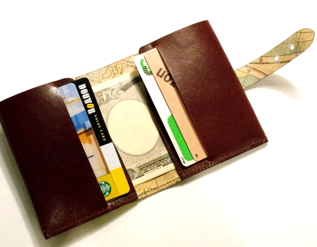 【牛革スモール財布シリーズ】の "札と十枚財布"です。必要最小限ギリギリまで小さくした中にお札、カード10枚を収納できます。