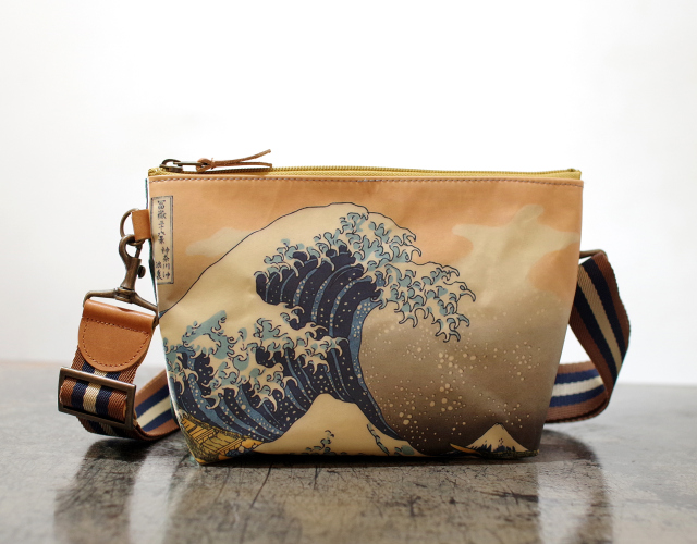 北斎浮世絵 波柄 × ピーコックグリーン色 ストラップ付ポーチ