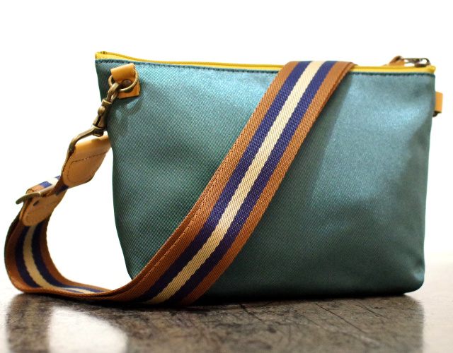 【世界に一つだけのショルダーバッグ】 ドイツ新聞×ピーコックグリーン色 ストラップ付ポーチ 08