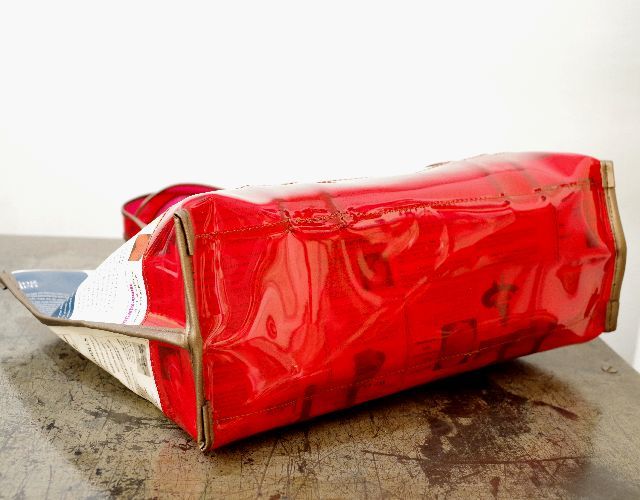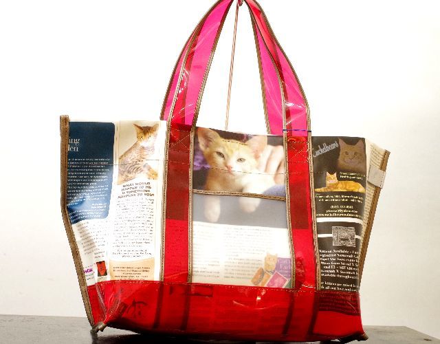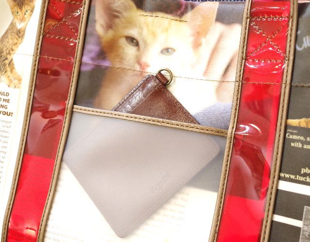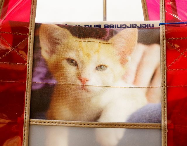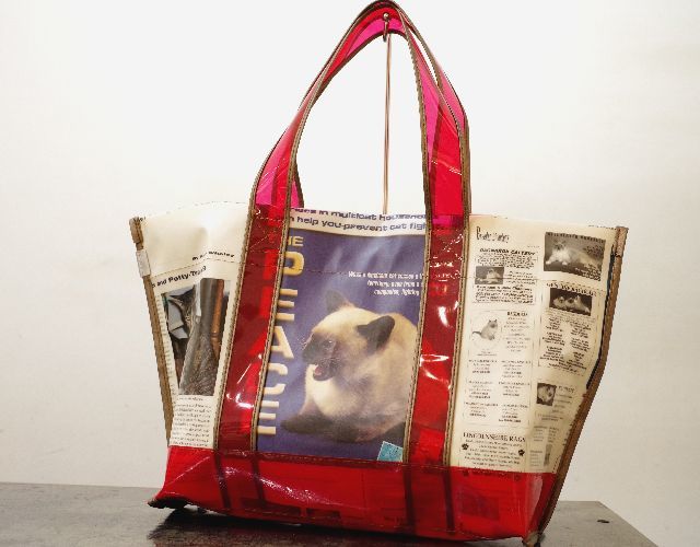 【世界に一つだけのトートバッグ】ネオントート ルージュレッド色 猫雑誌柄