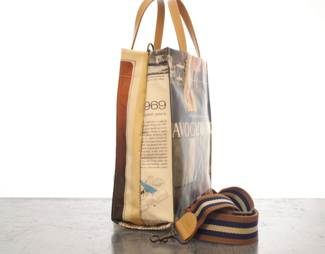 【 SNS掲載商品 】 ヴィンテージペーパー&牛革 リアルトート プチ ストラップ付き S73