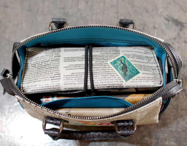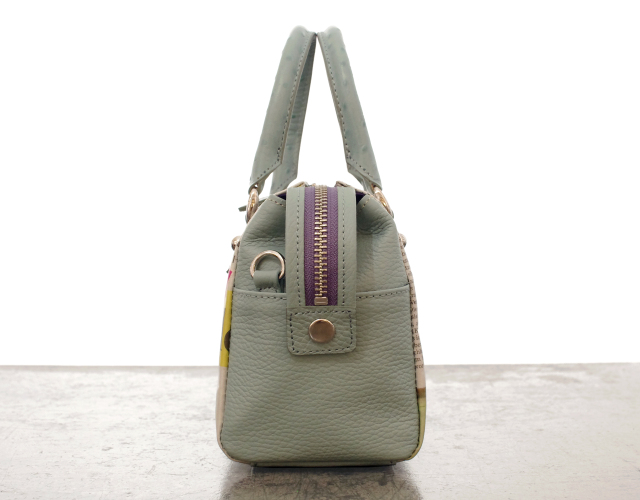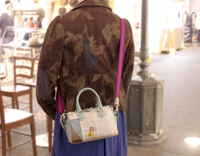 【世界に一つだけのショルダーバッグ】 ドイツ新聞 ミニボストン型ポシェット ミントグリーン色 02