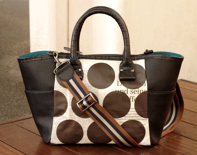 ★新型★【世界に一つだけのキラキラショルダートート】横長型トート小 ショルダーストラップ付 箔ドットブラック色 ドイツ新聞柄