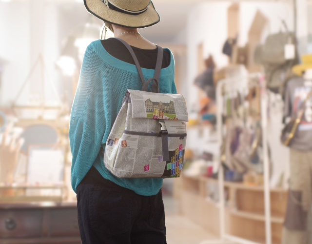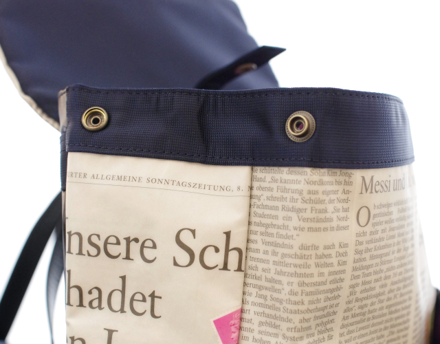 【世界に一つだけのリュックサック】 ドイツ新聞柄 トラペーズリュックサック ネイビー色 16