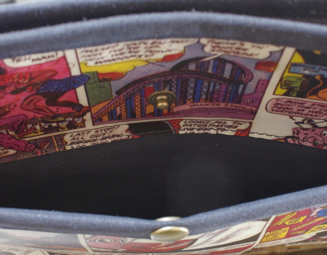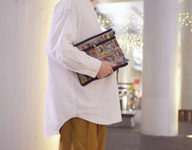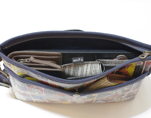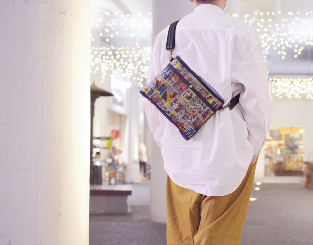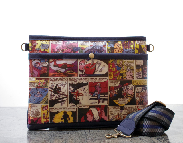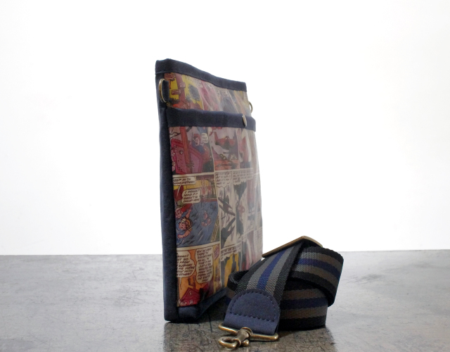 1950年代 アメコミ柄 × スウェード ネイビー色 サコッシュ / クラッチ M サイズ 【 C柄 】