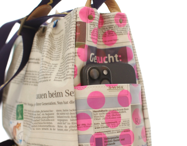 【世界に一つだけのショルダーバッグ】 ドイツ新聞柄 シェルポシェット ネオンドット ピンク色 01