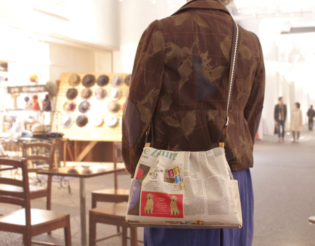 【世界に一つだけのショルダーバッグ】 ドイツ新聞柄 シェルポシェット ハウンドトゥース × オレンジ 色 02
